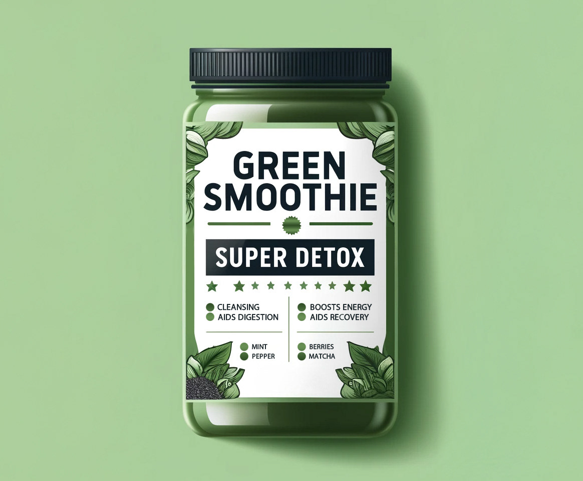 Mockup proposal for Green Smoothie for a smoothie / supplement manufacturer.